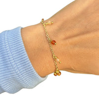 Zeg maar hallo tegen jouw nieuwe go-to accessoire. Deze fijne goldplated armband met rood-oranje carneool is klein van formaat, maar groots in energie. Carneool staat bekend als een echte actie-aardbei: geeft je moed, levenslust en een flinke dosis doorzettingsvermogen (zo eentje die zelfs op maandagochtend werkt). Het gouden kettinkje is verstelbaar, dus past altijd. Subtiel genoeg voor elke dag, opvallend genoeg voor complimenten.