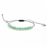 Groene aventurijn wordt ook wel de geluksbrenger onder de edelstenen genoemd. En lucky you: deze verstelbare armband is er speciaal voor iedereen die wel wat positieve flow kan gebruiken. De frisse groene kralen (ca. 6 mm) symboliseren groei, vertrouwen en voorspoed. Geregen op een zwart koord van ca. 18 cm dat je precies naar wens afstelt. Mooi als cadeau voor jezelf of voor die ene goaldigger in je leven.