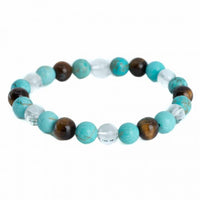 Soms heb je niet één, niet twee, maar drie edelstenen nodig – en dan zit je met deze armband helemaal goed. Turkoois staat bekend om z'n beschermende en kalmerende vibes, bergkristal geeft je energie een frisse reset en tijgeroog? Die boost je focus en zelfvertrouwen. Een polscocktail van kracht en balans dus, mét een stijlscore van 10. De kralen zijn ca. 8 mm groot, de armband is ca. 18 cm lang en elastisch – dus makkelijk draagbaar en altijd comfortabel. Energie in balans, outfit on Lees meer ›